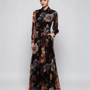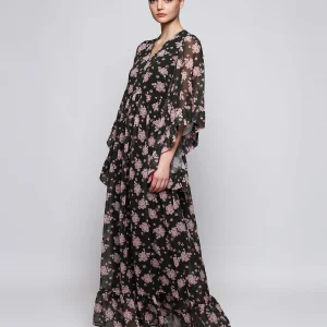 Vestido largo negro de gasa estampado floral D