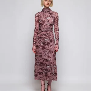 Vestido drapeado rosa estampado toile de jouy N