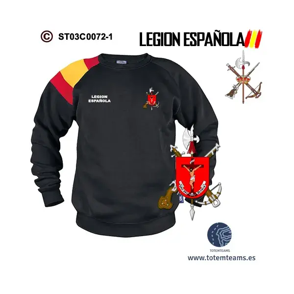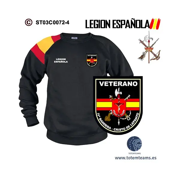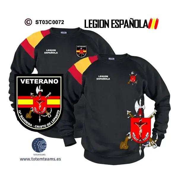 Sudadera-bandera IVª Bandera Cristo de Lepanto Legión Española, puedes adquirirla en los colores marino, negro y blanco para que elijas la que más te gusta.